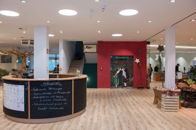 Nach dieser Devise führen Karin und Michael Sendl ihren Biomarkt mit seinen über 60 Mitarbeitern in Weilheim an der Olympiastraße – naturnah und heimatverbunden. Zum in sich stimmigen Geschäftskonzept konnten wir mit unserem Konzept für die Fassade und die Innenräume einen wichtigen Beitrag leisten. Die Umsetzung erfolgte mit Kalkfarbe und Oxydpigmenten, die Außenfassade wurde mineralisch lasiert. Am besten Sie überzeugen sich bei einem Besuch vor Ort von der angenehmen Atmosphäre: ohne Worte, einfach ausprobieren und anbeißen.
