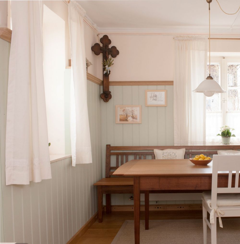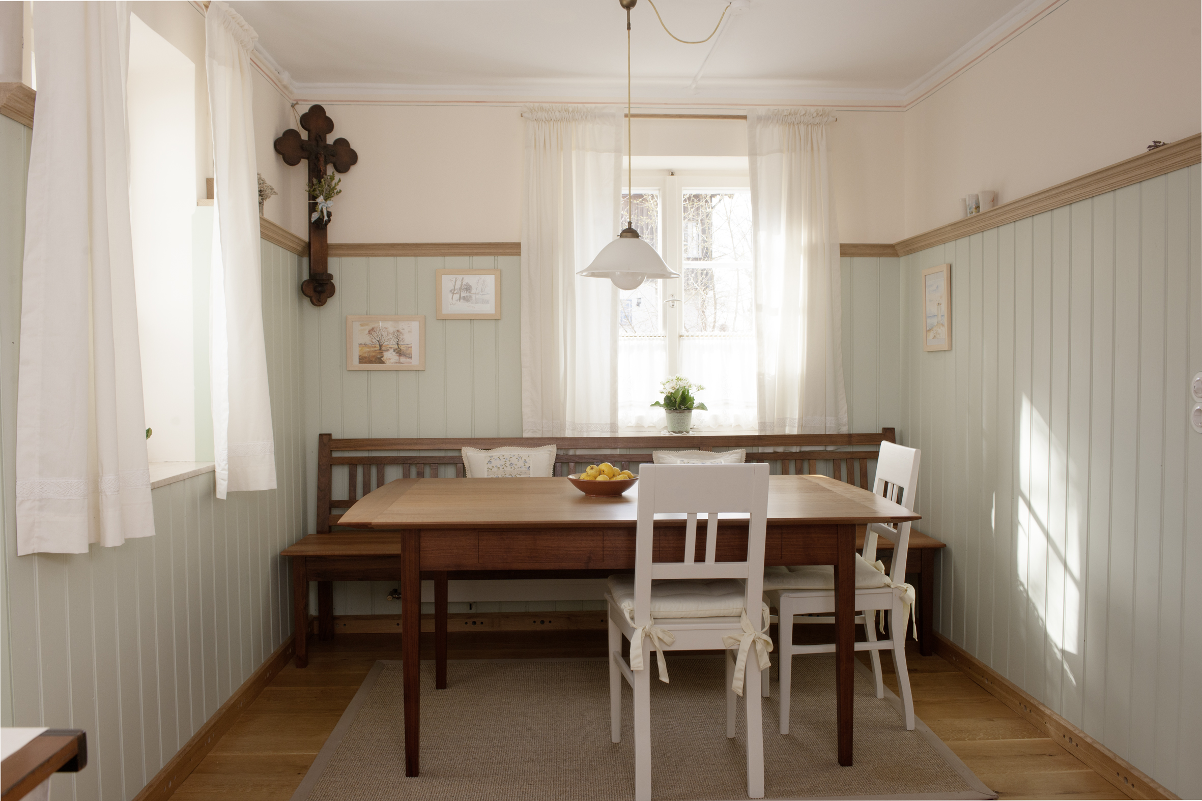 Seit Generationen ist die Handwerkerfamilie Wagner in Ammerland ansässig. In dem denkmalgeschützten Haus aus dem Jahr 1871 ist sowohl die Schreinerei als auch die Familie zu Hause. Bei der kürzlich erfolgten Renovierung der Innenräume kam es zu einer handwerklichen Kooperation mit Familie Wagner, in der nach eingehender Planung und gut überlegter Material- und Farbwahl ein liebevoll gestalteter Raum entstand: mit natürlich geölten Hölzern, gekalkten Wände und holländischen Leinöl-Lackfarben für die Vertäfelung – ein gemütlicher Mittelpunkt für das Familienleben voll Anmut und Klarheit.
